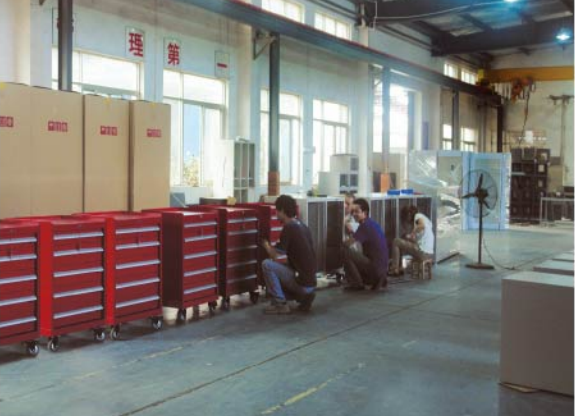 工具車適用于工具、刀具、零部件在生產(chǎn)現(xiàn)場(chǎng)中的定置管理,使您的物品存取工作真正做到準(zhǔn)時(shí)、準(zhǔn)確、高效、低耗。 結(jié)構(gòu)特點(diǎn) 編輯 1、 高強(qiáng)度的結(jié)構(gòu)設(shè)計(jì)和噴粉表面處理工藝,能適應(yīng)工廠較復(fù)雜的工作環(huán)境。 2、 裝有優(yōu)質(zhì)軸承和導(dǎo)軌,保證抽屜承受額定載荷時(shí)亦能輕松順暢開合。 3、 根據(jù)需要可自由選擇配置不同高度的抽屜,充分滿足生產(chǎn)現(xiàn)場(chǎng)的需要。 4、 可以配置帶有防油膠墊的頂框,保護(hù)放置物品不受損害以及防止物品滑落。 5、 鎖具先進(jìn),只用一把鎖就能鎖上所有的抽屜,保證物品安全。 6、 柜體底部配有墊腳,保護(hù)柜體在放置或移動(dòng)時(shí)不受損壞,方便用叉車搬運(yùn)。 多種表面顏色,滿足生產(chǎn)現(xiàn)場(chǎng)整體布置的需求 7. 全寬型鋁合金抽屜把手及可更換的標(biāo)簽,美觀、方便、實(shí)用。 8. 先進(jìn)的抽屜安全扣設(shè)計(jì),保證抽屜在關(guān)閉后不會(huì)意外滑出。 9. 更有4種國際標(biāo)準(zhǔn)色以供選擇(ral5005,ral5015,ral6011,ral7035),滿足生產(chǎn)現(xiàn)場(chǎng)整體布置的需要。 10. 采用國際先進(jìn)水平鎖具,只一把鎖就能鎖上所有抽屜,保證物品安全。 11. 加底框及高品質(zhì)的腳輪,推行平穩(wěn),方向性好,剎車固定后不會(huì)滑動(dòng)。 12. 先進(jìn)的互鎖裝置,在打開一個(gè)抽屜時(shí)其他抽屜自動(dòng)鎖死不能打開,防止抽屜全部打開造成柜體傾斜。 13.工具車的工作臺(tái)面采用獨(dú)特的注塑成型,強(qiáng)度更高。 14.中央鎖采用環(huán)形鎖匙結(jié)構(gòu),可延長鎖的使用壽命。 15.工具車四角都配有新型復(fù)合材料制成的防撞條,能有效的緩沖意外碰撞造成的損害。 16.工具車的重型車輪,125MM直徑更容易跨越障礙物。 17.臺(tái)面有特殊的小凹槽,可用來盛放黃油等液體,方便使用。 18.工具車抽屜內(nèi)可以存放豐富的工具模塊。 19.抽屜兩側(cè)采用疊加式滾珠滑軌,具有優(yōu)秀的順暢度。 20.工具車的每個(gè)抽屜擁有自鎖功能。 21.工具車兩側(cè)采用網(wǎng)孔板內(nèi)加鋼板的雙層鋼板設(shè)計(jì),使車體更加堅(jiān)固,持久耐用。 工具車與工具柜的區(qū)別 工具車是可以移動(dòng)的工具柜,適合在生產(chǎn)現(xiàn)場(chǎng)安全、合理地運(yùn)送工具和配件。 工具車由各種型號(hào)的工具柜增加頂柜和腳輪等移動(dòng)部件組成。 工具車的外型尺寸的高度:重型工具車為所選用的工具柜的高度加上140mm;輕型工具車為所造工具柜高度加上80mm。高強(qiáng)度的結(jié)構(gòu)設(shè)計(jì)和陰極電泳底漆表面處理工藝,能適應(yīng)工廠較復(fù)雜的工作環(huán)境。