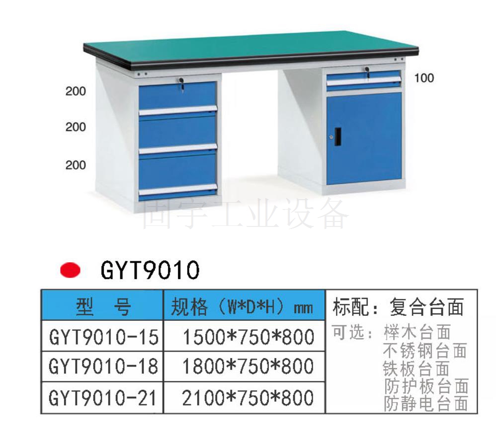 工作臺(tái)采用優(yōu)質(zhì)冷扎板精工制作而成,堅(jiān)固的工作桌框架,牢固平穩(wěn),可使工作桌承重1000kg;多種工作桌面選擇,可配合不同使用的要求;工具吊柜(箱),側(cè)柜(箱)燈架,調(diào)節(jié)腳杯,,外形美觀;層板,抽屜質(zhì)量上乘,承重大,抽屜內(nèi)可根據(jù)需要任意分隔;節(jié)約空間,適用性強(qiáng)。 范圍 工作臺(tái)適合于模具、鉗工、檢測(cè)、維修、組裝等各種不同應(yīng)用場(chǎng)合,具有良好的耐腐蝕性,耐臟性,抗沖擊性和承重能力強(qiáng)。桌面經(jīng)特殊處理,具有防腐、抗沖擊力強(qiáng)等特點(diǎn),多種桌面的選擇,可配合不同的使用要求;所配置的抽屜、柜門方便使用者存儲(chǔ)工具;桌角上預(yù)留電源孔,方便安裝電源插座。工作臺(tái)(桌)分為輕型(可承重300公斤),中型和重型工作臺(tái)(桌)可承重1000公斤及特制的工作臺(tái)??筛鶕?jù)需要靈活地配置各種吊柜、單柜、雙柜等,可加裝掛板,電器板,燈頂板、調(diào)節(jié)腳杯,輪子,擱板等桌上部件,具有多種選擇,能夠滿足各種工位的需求。 工作臺(tái)材質(zhì)采用優(yōu)質(zhì)冷軋鋼板,表面采用靜電噴涂處理而制成,堅(jiān)固的工作桌框架,牢固平穩(wěn),可使工作桌臺(tái)面均勻承重達(dá)到1000kg。桌面有多種材質(zhì)組成,適用于各行業(yè)辦公場(chǎng)所??膳浜瞎ぞ吖?,吊柜,掛板,單開門柜使用。抽屜、承辦承重大,性能好,抽屜里可根據(jù)需求配置分隔條 工作臺(tái)分類:根據(jù)臺(tái)面的不同分為:櫸木工作臺(tái)、鋼板合成工作臺(tái)、防靜電工作臺(tái)、高分子工作臺(tái);根據(jù)承重的不同分為:輕型工作臺(tái)、中型工作臺(tái)、承重型工作臺(tái);根據(jù)功能的不同分為:多功能工作臺(tái)、帶吊柜工作臺(tái)等等。 臺(tái)面優(yōu)勢(shì) 復(fù)合臺(tái)面特性臺(tái)面平整度高,撓曲度為0.8mm。表面2mm厚度為高分子材料,使臺(tái)面耐酸堿、耐磨、耐油。臺(tái)面采用高壓纖維板,使臺(tái)面更具有抗沖擊性。特別的圓弧桌角,不易受撞擊損壞。高強(qiáng)度塑膠包邊堅(jiān)固、實(shí)用、不易損壞、不易脫落。櫸木桌面特性桌板使用櫸木與防水膠經(jīng)加壓制造而成。表面光滑平整,美觀不易變型,耐油、耐熱、耐酸、耐堿,適合一般工廠作業(yè)與精密模具維修,儀器置放與檢測(cè)等用途。不銹鋼包面特性桌板使用高壓合成板,表面包1-2mm砂面不銹鋼板,以達(dá)美觀耐用。耐高溫、耐磨損、耐油、使用壽命長,為多功能桌板,適合一般工廠、食品業(yè)、研究室、電子廠無塵室使用。輕型工作臺(tái)可承重300kg-500KG防火板臺(tái)面特性輕巧、美觀、耐磨、防火。層壓板臺(tái)面特性工作桌面平整,變型小,強(qiáng)度高,抗沖擊性好。 標(biāo)準(zhǔn)顏色 產(chǎn)品顏色 標(biāo)準(zhǔn)的顏色可分為6種:淺藍(lán)色(RAL5015), 電腦灰(RAL7035), 機(jī)床綠(RAL6011),深藍(lán)色(RAL5017)。